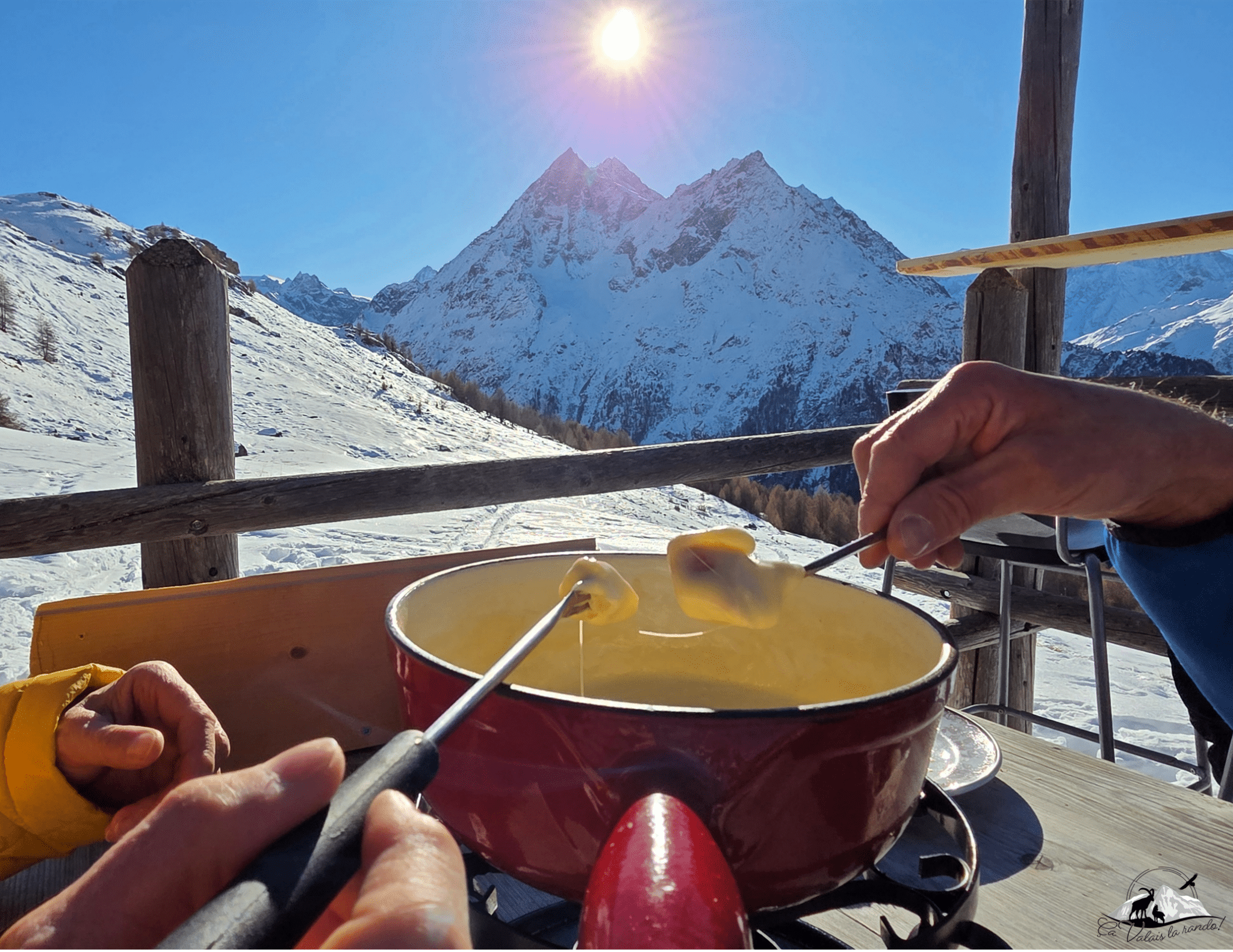 Et pour couronner cette aventure hivernale, rien de tel qu’une succulente fondue partagée à la buvette du Tsaté, dans une ambiance chaleureuse et authentique.