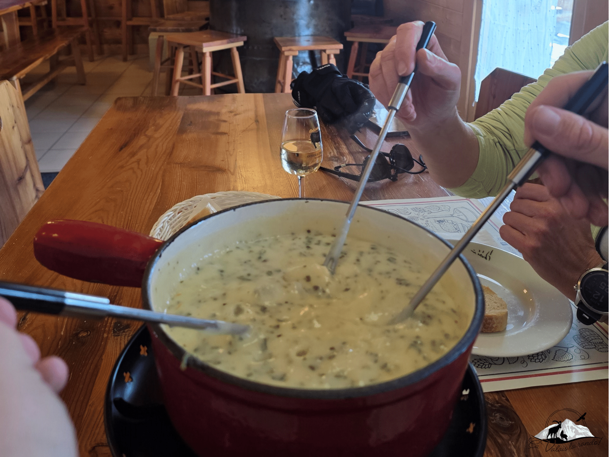 Après l’effort, place au réconfort et à la convivialité ! Nous partagerons ensemble une bonne fondue aux herbes de montagne à la buvette de Mandelon, dans une ambiance chaleureuse et authentique. Une plongée au cœur de l’histoire du lieu, puisque cette buvette a été aménagée dans deux anciennes étables de l’alpage.